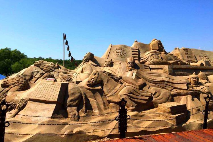 后前往夏季玩水度假必去之地,黃金海岸沙雕海洋樂園,景區內沙質細膩、海岸平滑、海水清澈。有海水浴場、沙雕觀賞、滑沙、滑草、水上腳踏車、高爾夫練習場、拉弓射箭等等諸多游玩項目。是一座集觀賞、娛樂、休閑、動態刺激、運動于一體;以藝術沙雕為觀光、水上娛樂和高檔次的大型文藝演出為特色的休閑性景區。