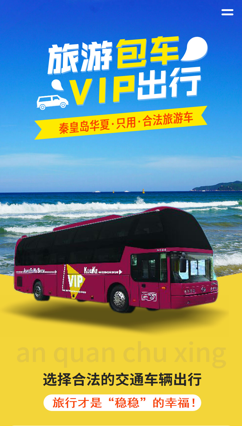 3.安全提示:秦皇島旅游租車/旅游包車請找正規旅行社、旅游車隊,安全旅游、出行有保障!